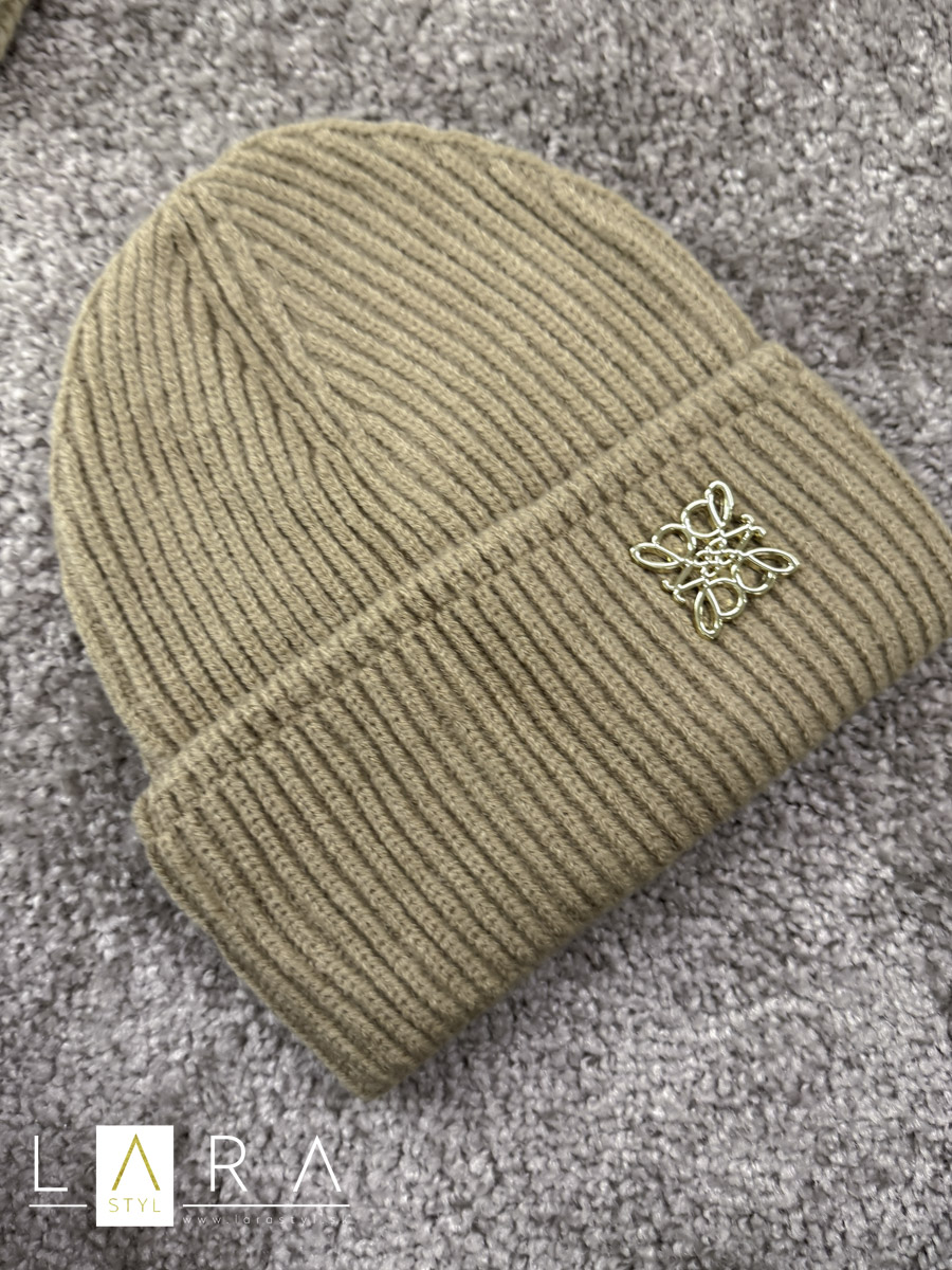 Dámska úpletová čiapka LOVE s logom v prednej časti.