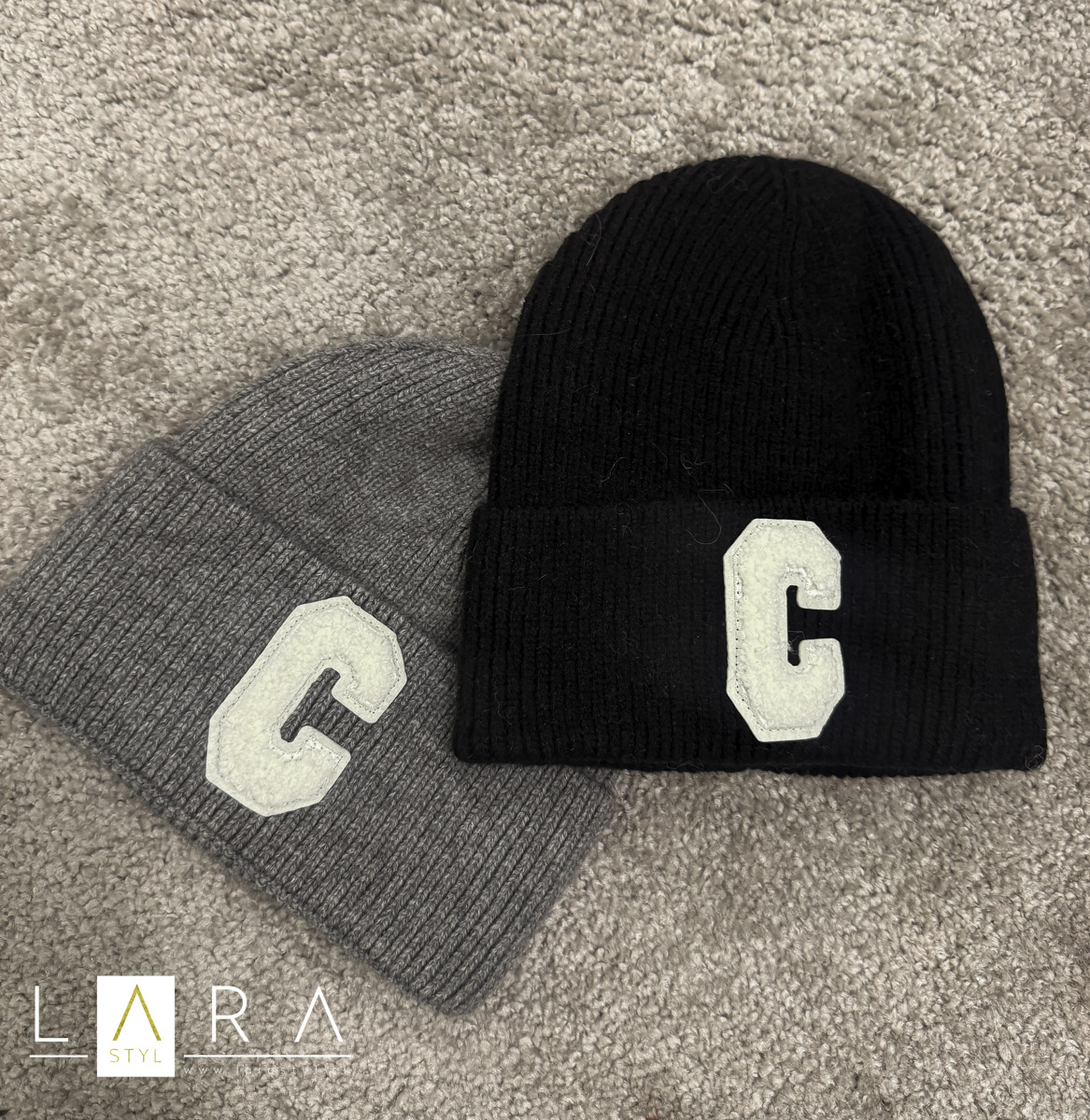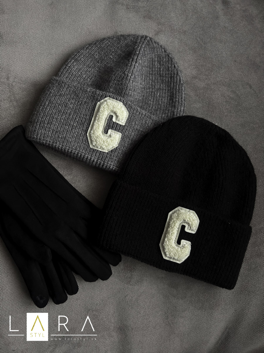 Dámska úpletová čiapka, s písmenom v prednej časti.