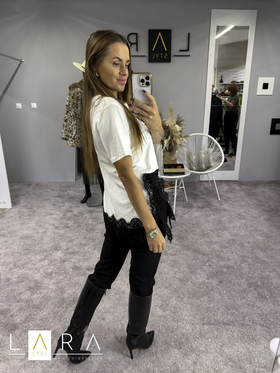 Úvod » Tričká-Košele » Dámske tričko s čipkou, biele