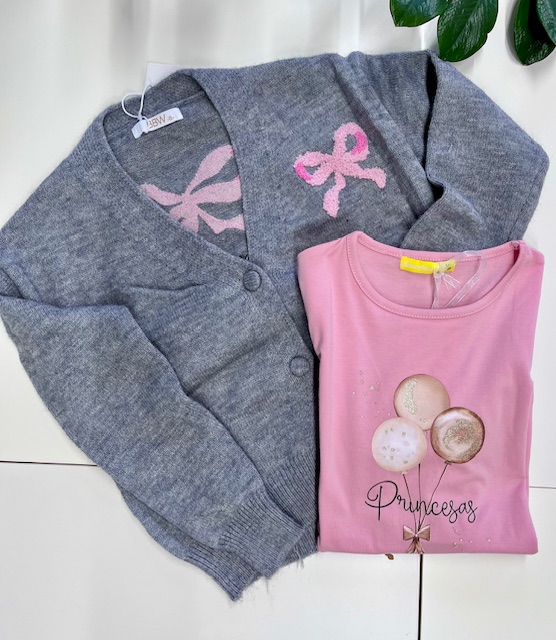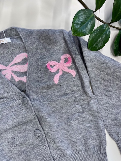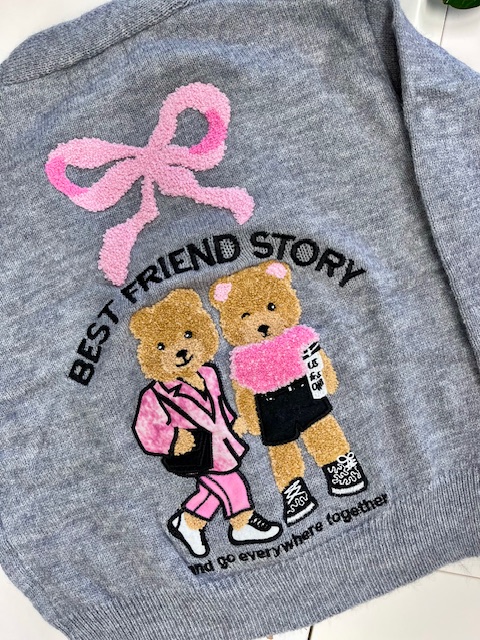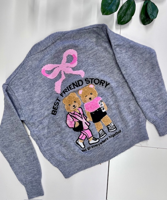 Úvod » DETSKÁ MÓDA » Dievčenský sveter na zapínanie s aplikáciou