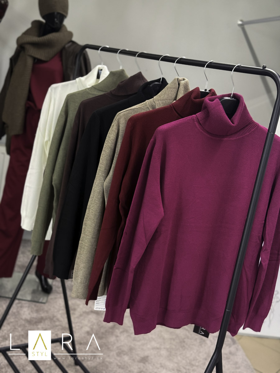 Elastický rolák z príjemného materiálu, rolák je voľnejšieho strihu. Modelka má výšku 165 cm.