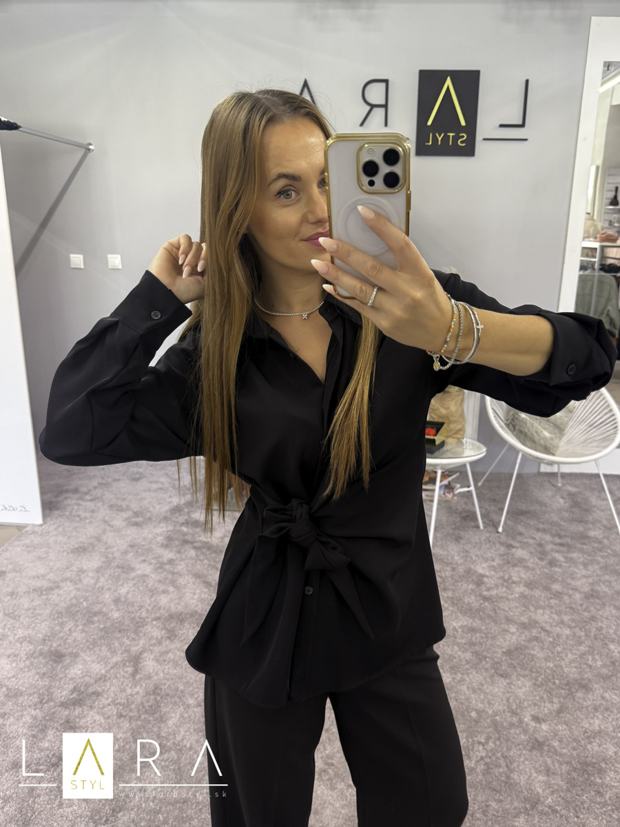 Úvod » Tričká-Košele » Elegantná blúzka s viazaním, čierna