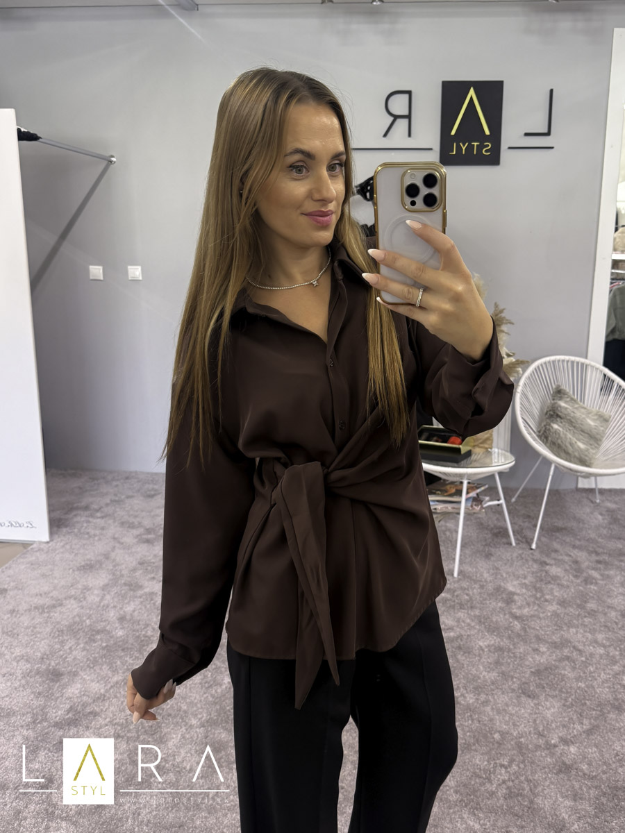 Úvod » Tričká-Košele » Elegantná blúzka s viazaním, hnedá