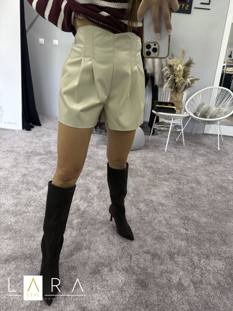 Úvod » Kraťasy - Sukne » Koženkové kraťasy, béžové