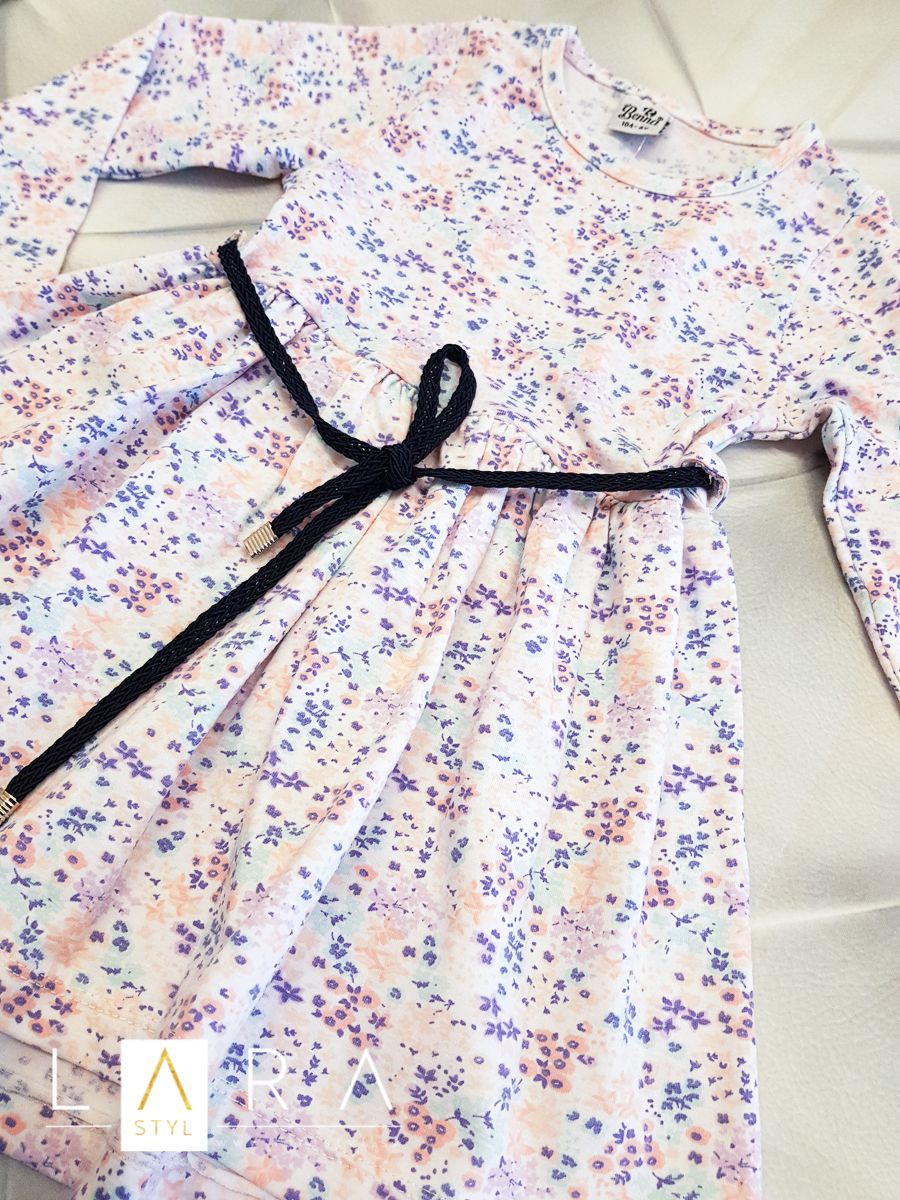 Jednoduché, kvetované šatky s dlhým rukávom strihané v páse. Suknička je jemne nariasená šatky sa v páse viažu.