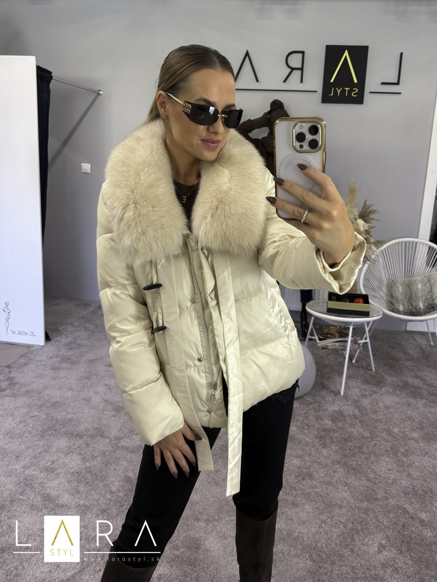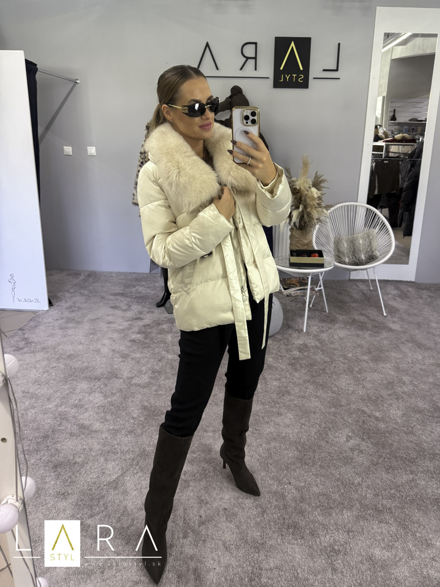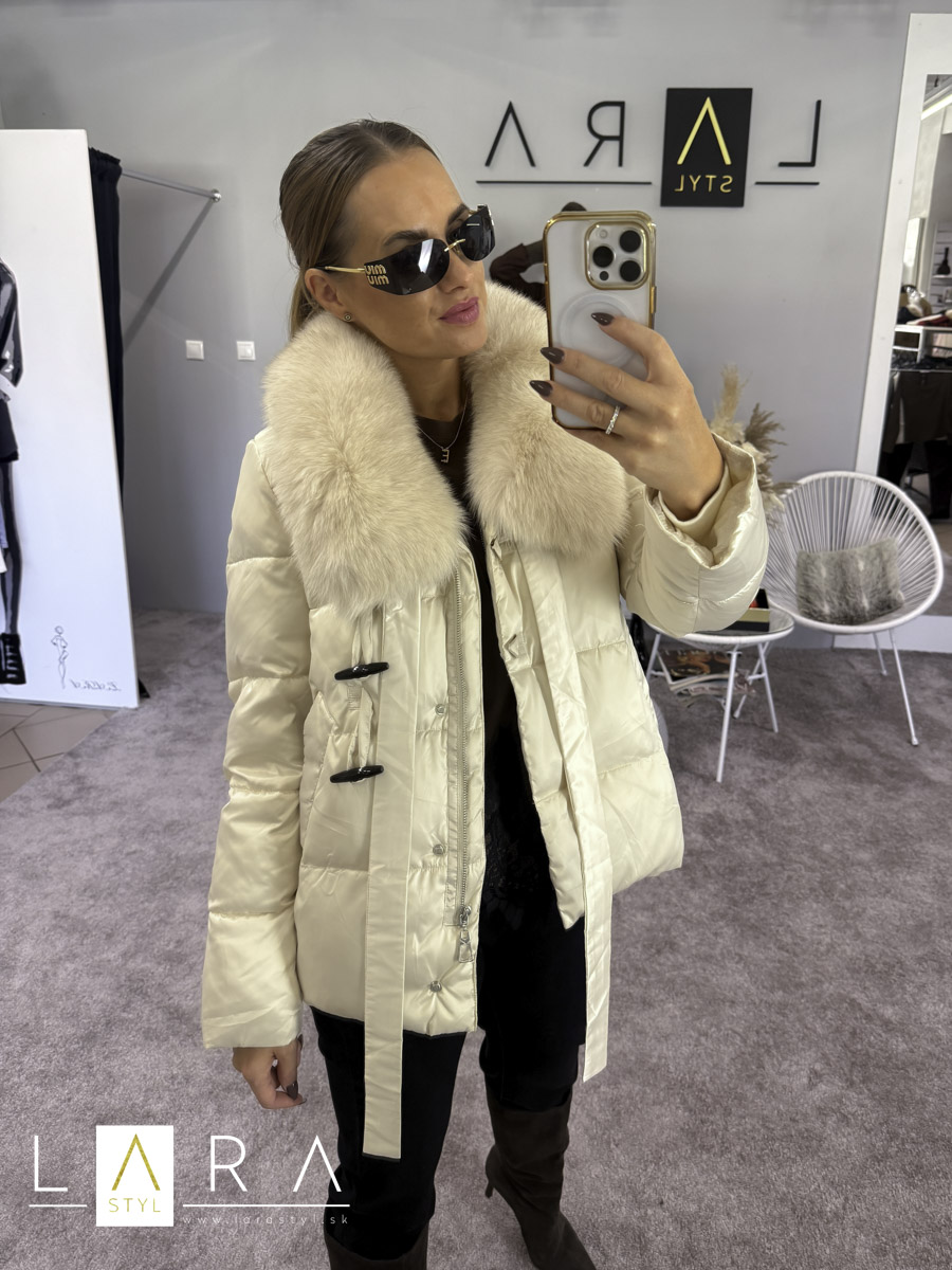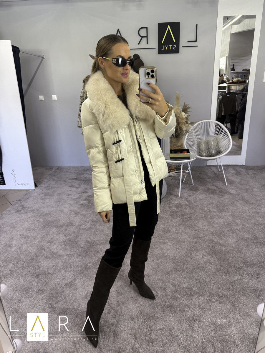 Luxusná dámska zimná bunda s naturálnou kožušinou so zapínaním na zips po celej dĺžke. V bočnej časti sa nachádzajú vrecká. Modelka má výšku 170 cm.