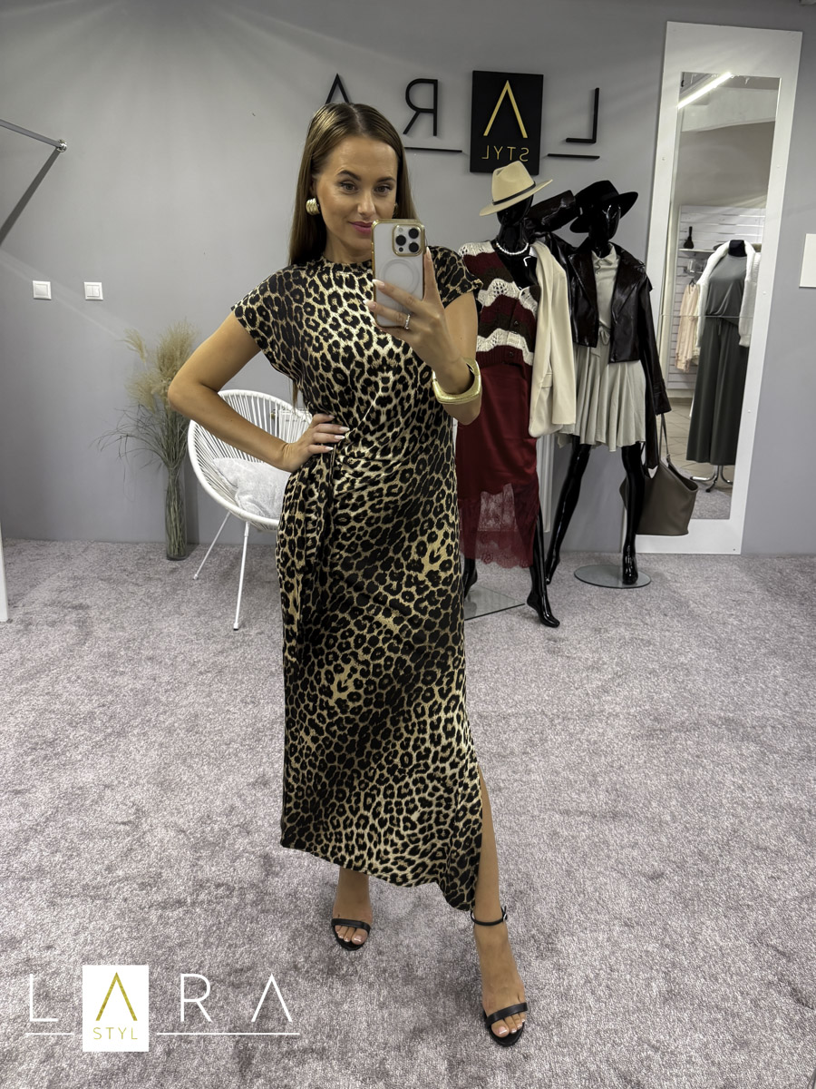 Midi šaty v nádhernom strihu vhodné na každú príležitosť, šaty sú ku krku, v páse viazanie na stranu, krátky rukáv. Šaty sú elastické . Modelka má výšku 165 cm.
