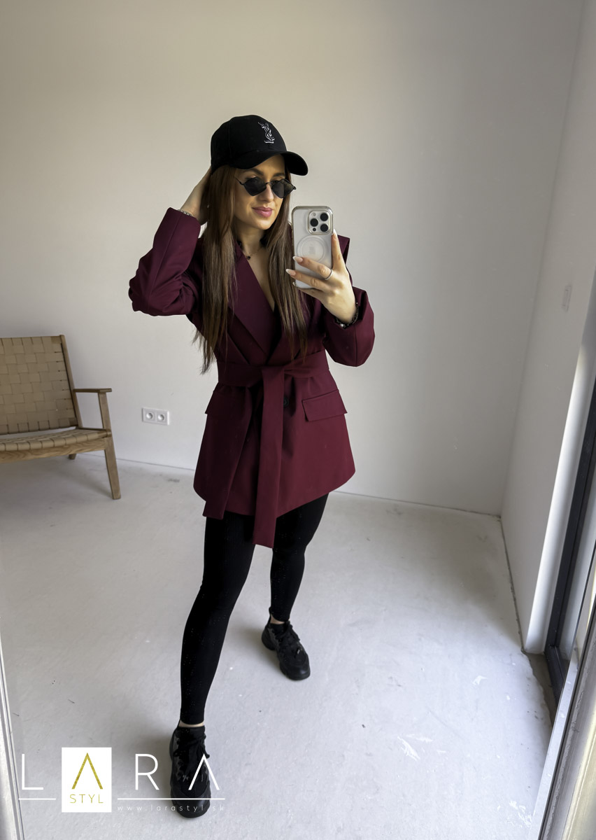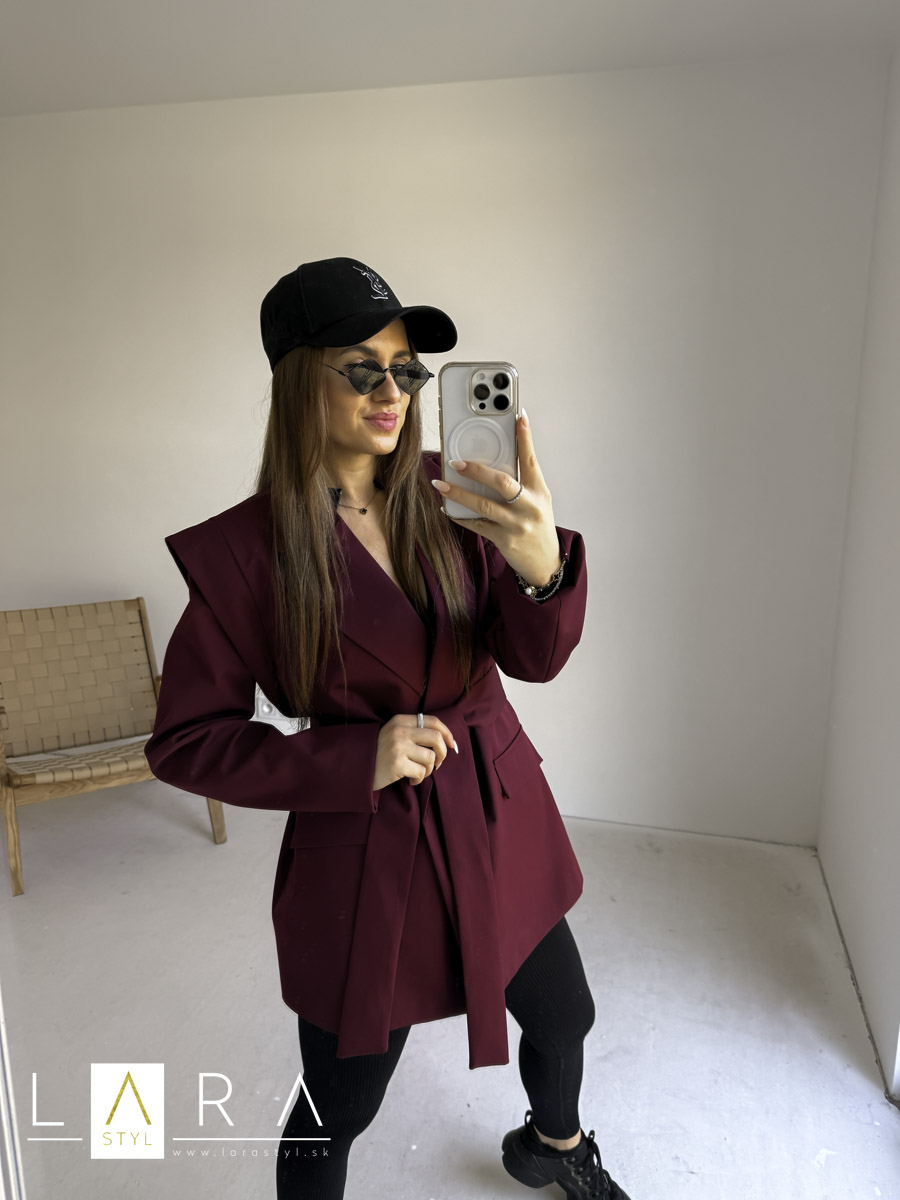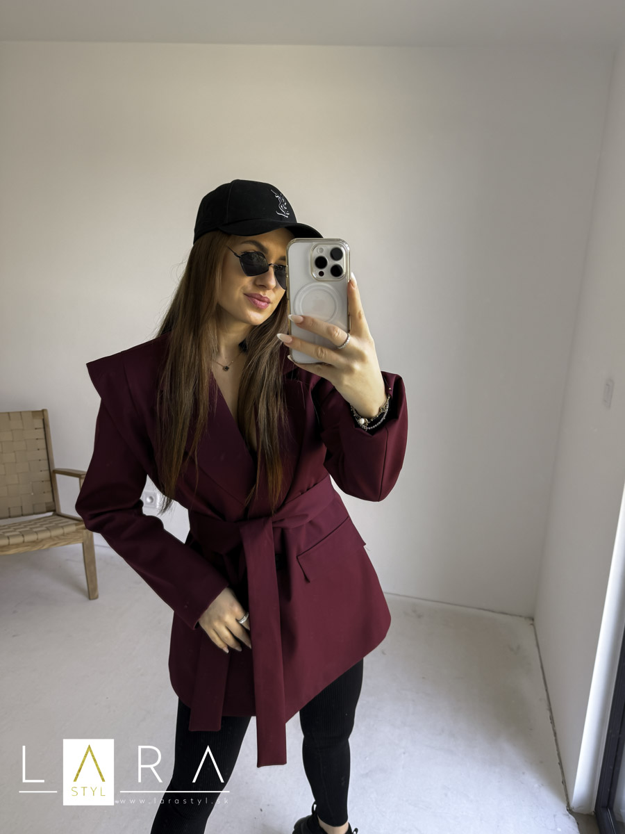 Štýlové sako je vyrobené z hladkého materiálu, má predné vrecká, zapínanie na gombíky, sako má ramenné vypchávky. Je oversize strihu. Sako má podšívku. Modelka má výšku 165 cm.