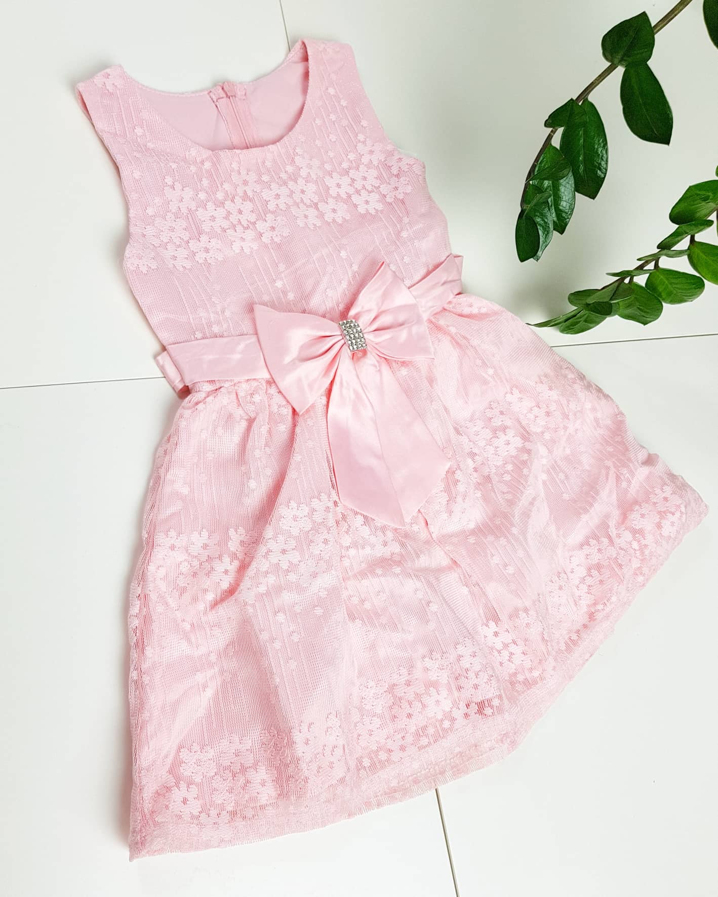Šaty LUNNA zdobené vyšíbanými kvetinkami. Sukňa je navrstvená. V prednej časti na chádza mašlička. V zadnej časti sa zapínajú na zips.