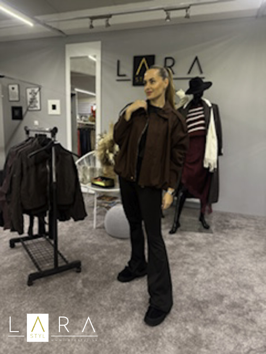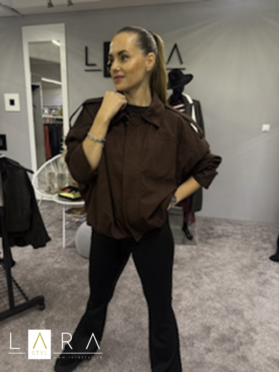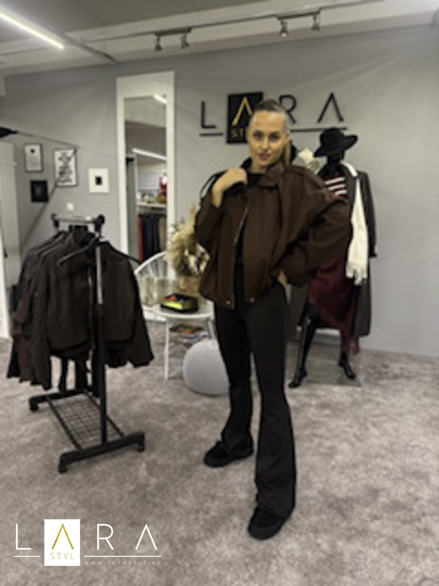Štýlová dámska bunda v mierne oversize strihu, v spodnej časti jemne pufové zakončenie, bunda má podšívku a dve vrecká, zapínanie na zips s golierikom. Modelka má výšku 165 cm.