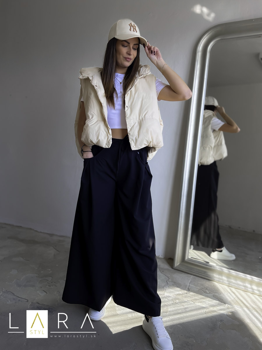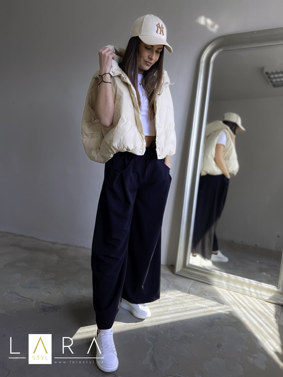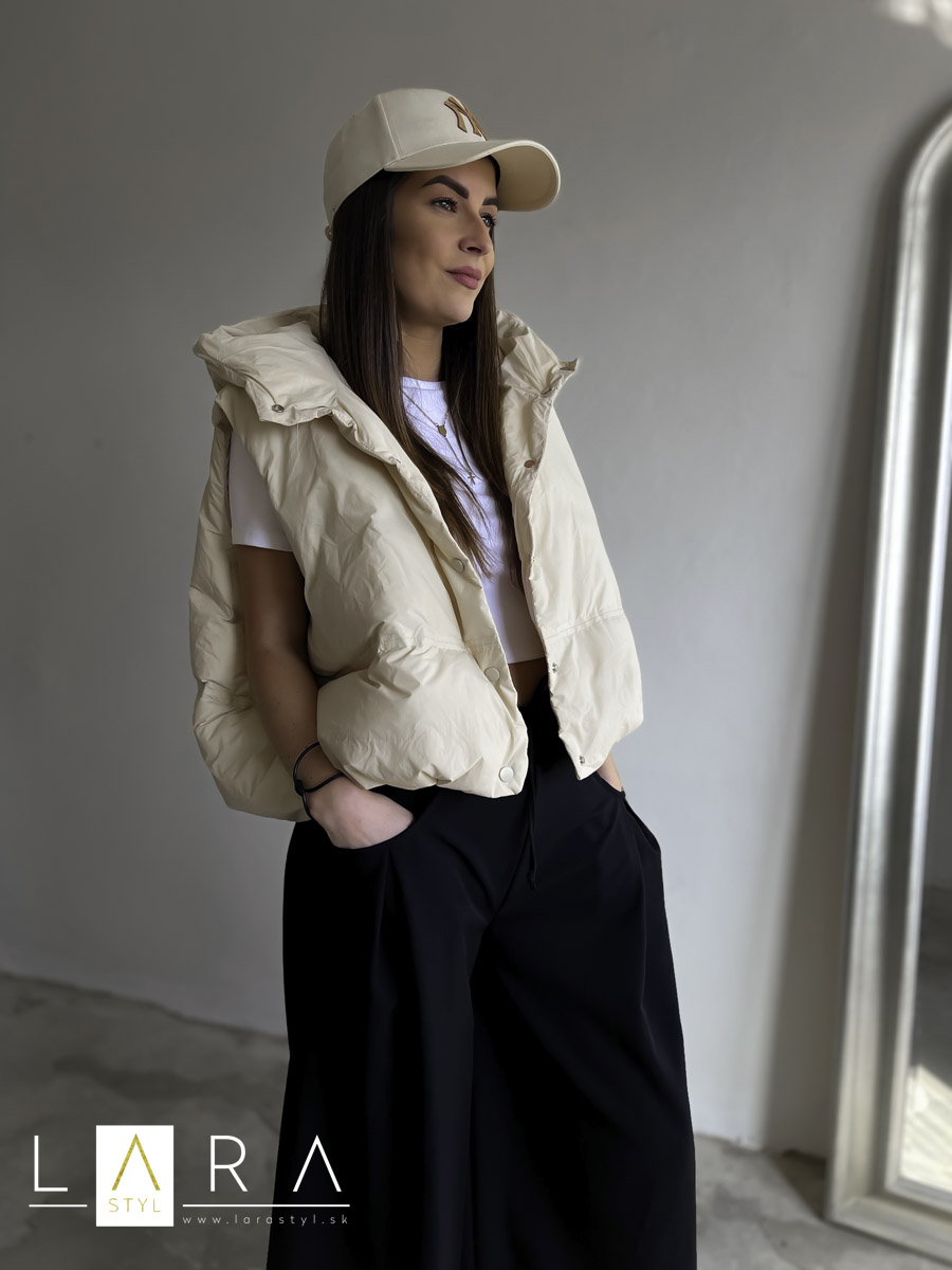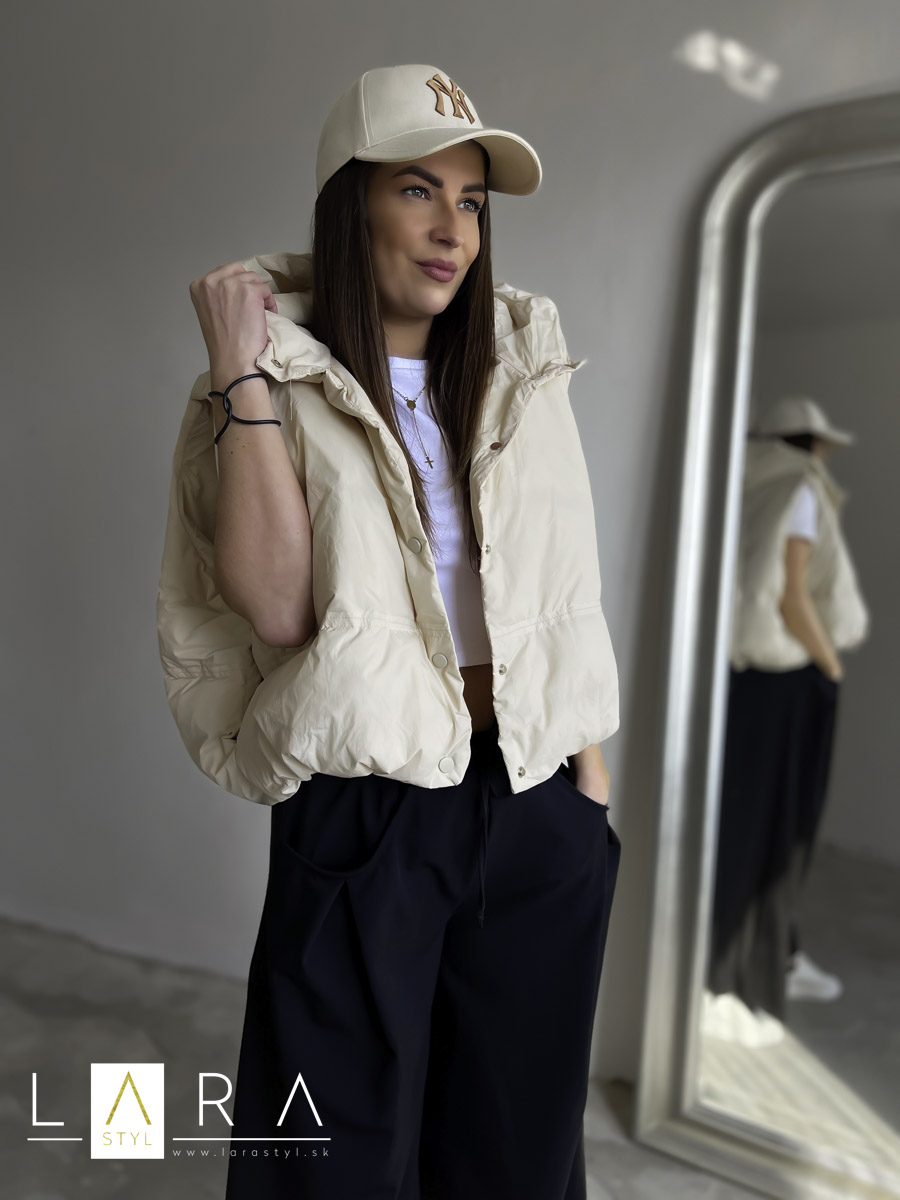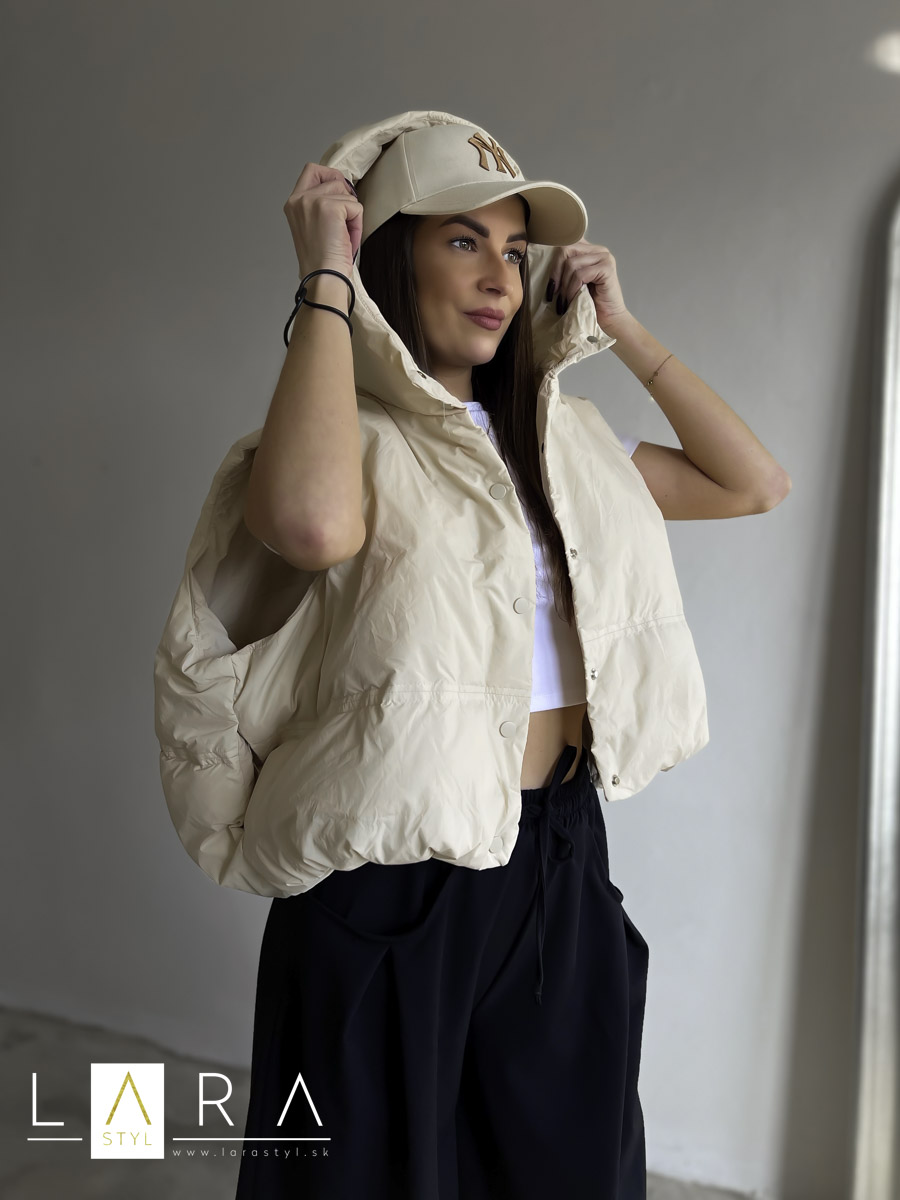 Štýlová balónová vesta s kapucňou so zapínaním na gombíky po celej dĺžke Modelka má výšku 170 cm.