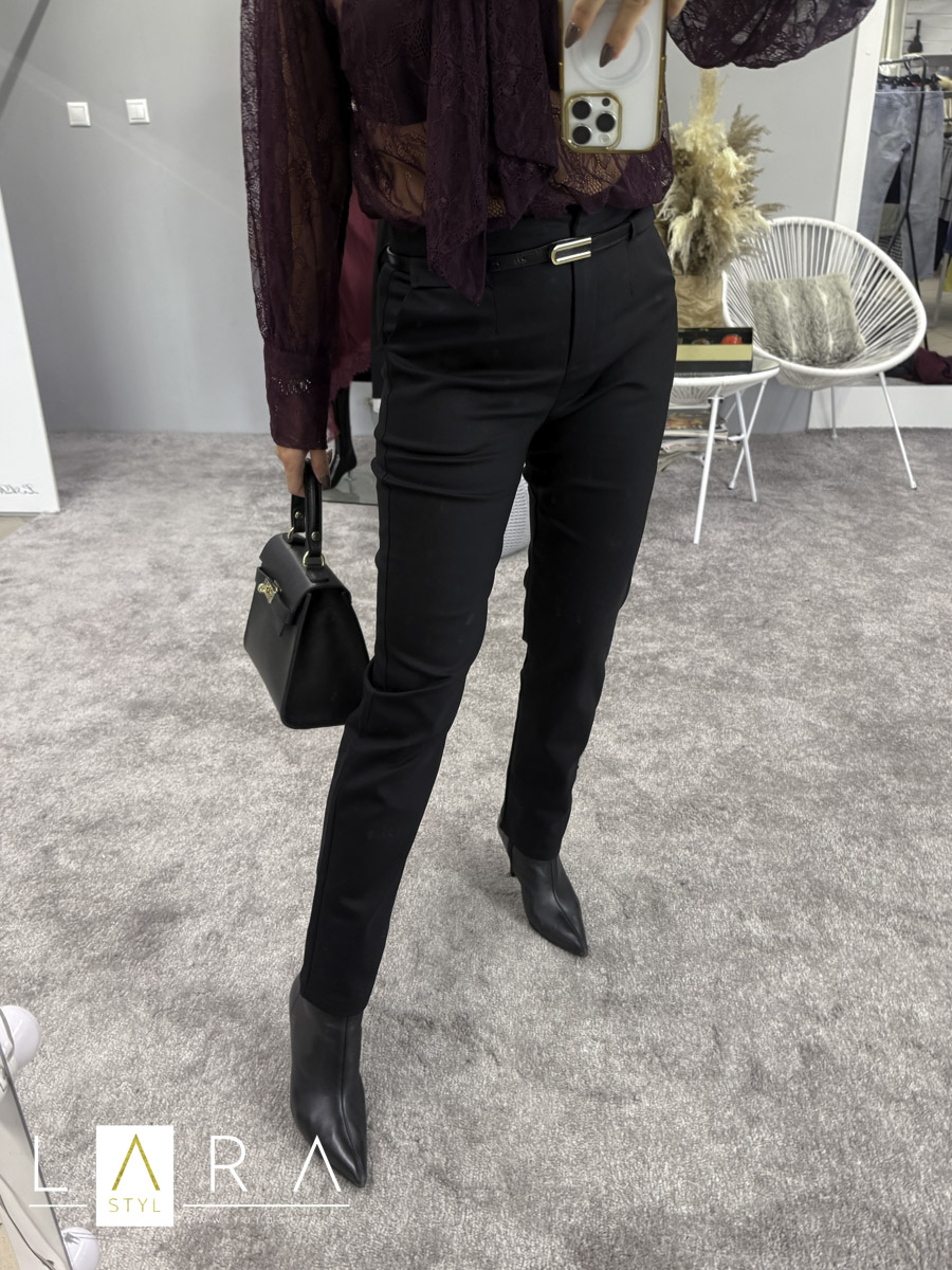 Štýlové nohavice s opaskom, čierne