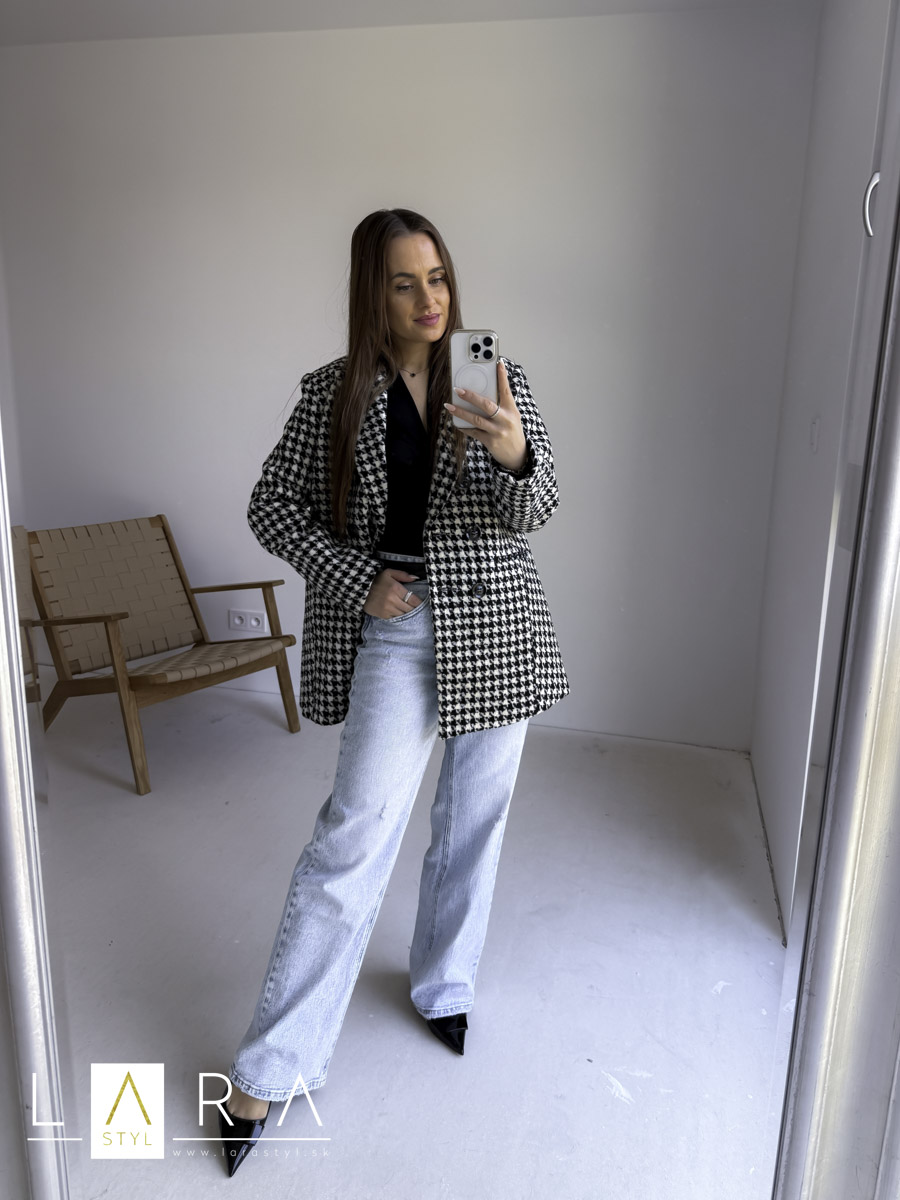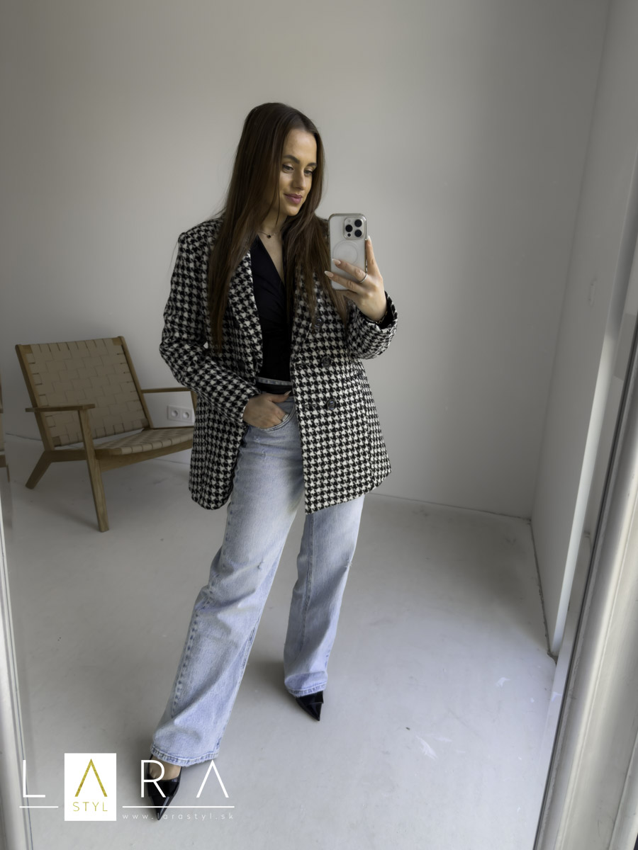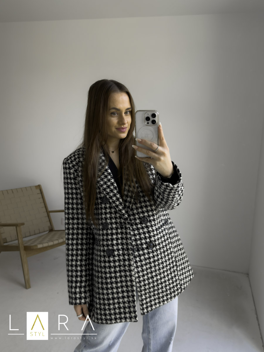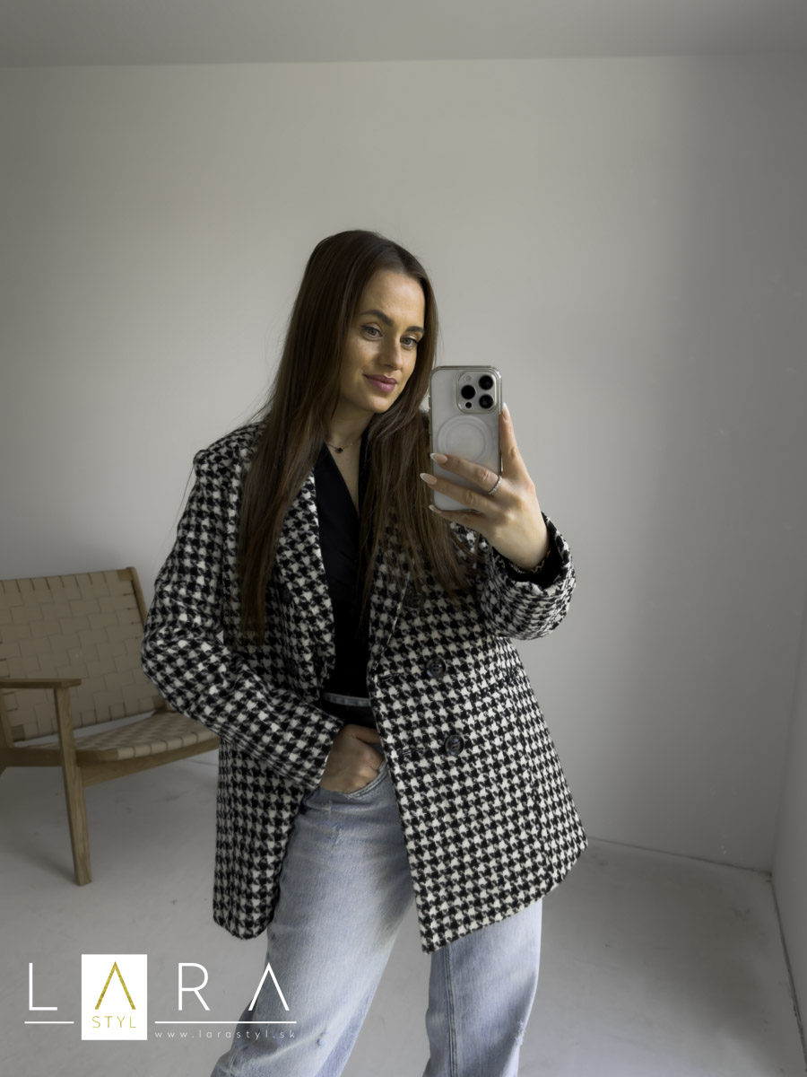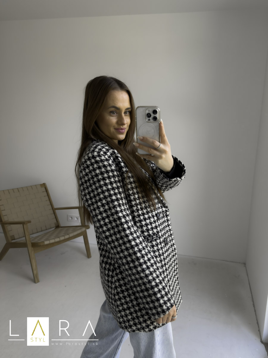 Štýlový futrovaný dámsky kabátik so zapínaním na gombíky. Modelka má výšku 165 cm.