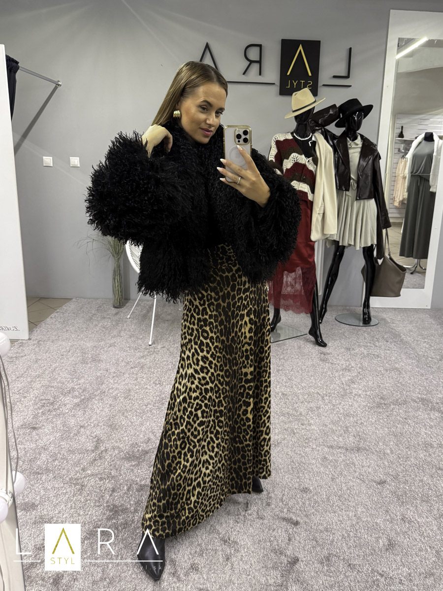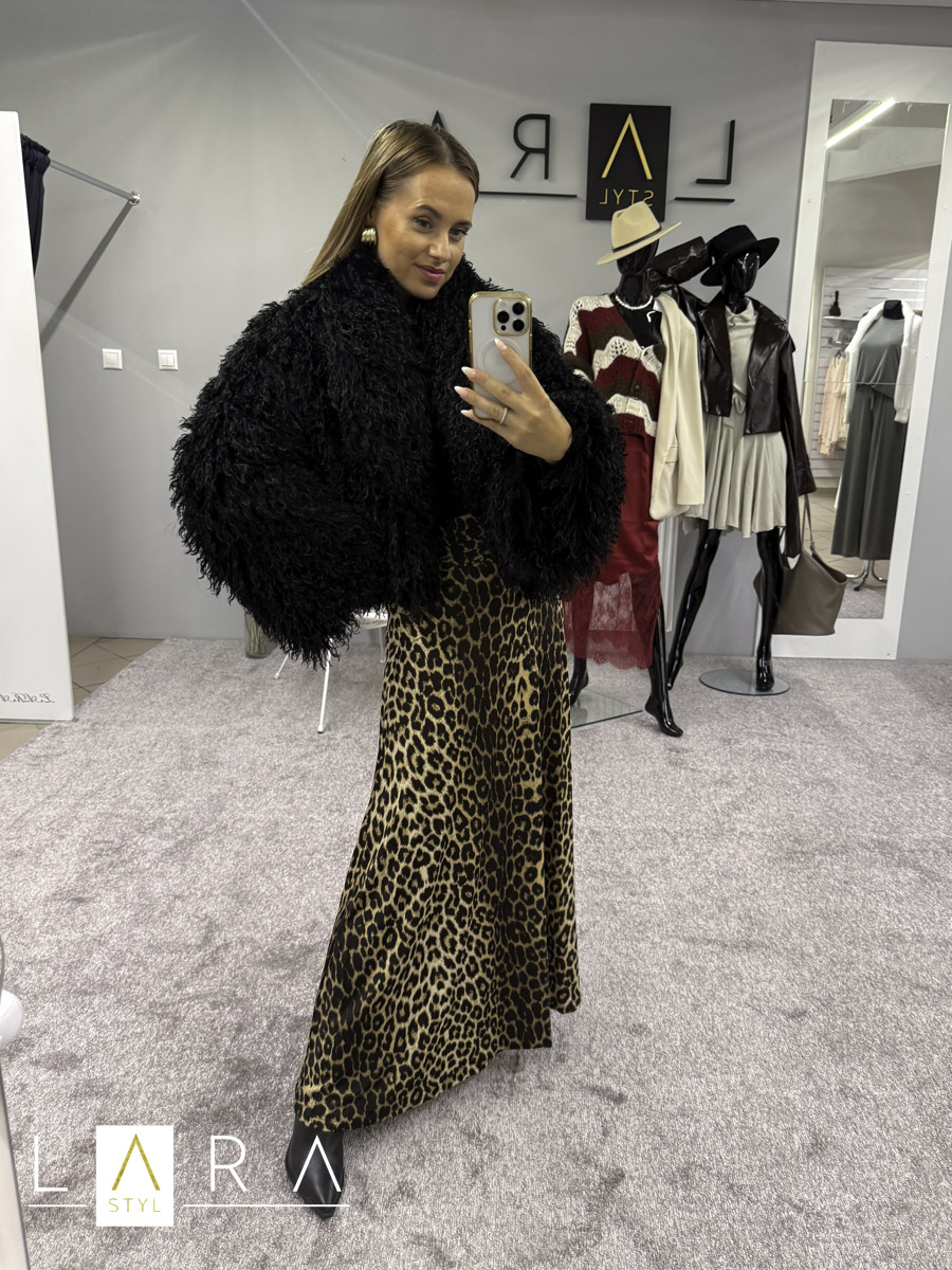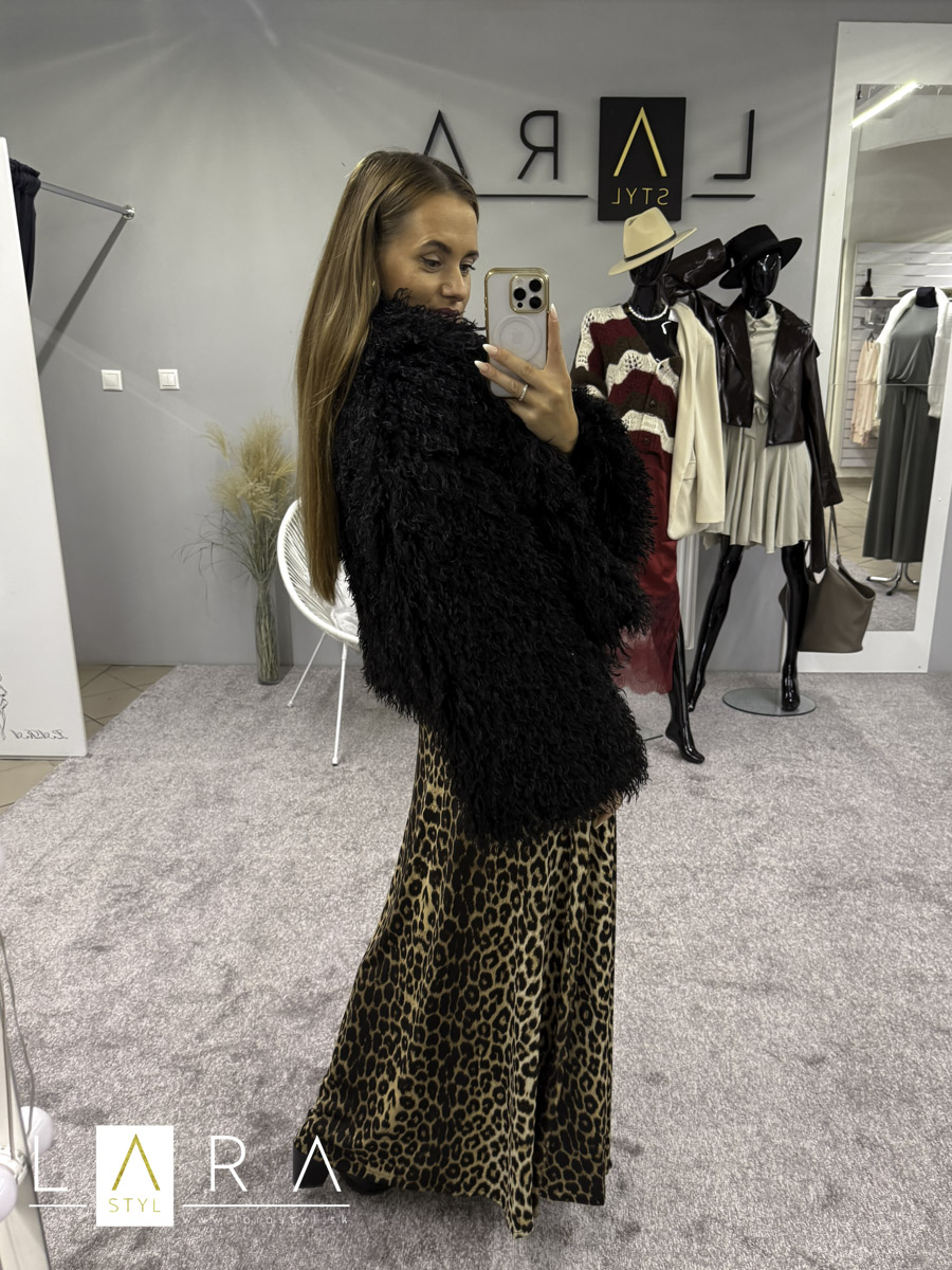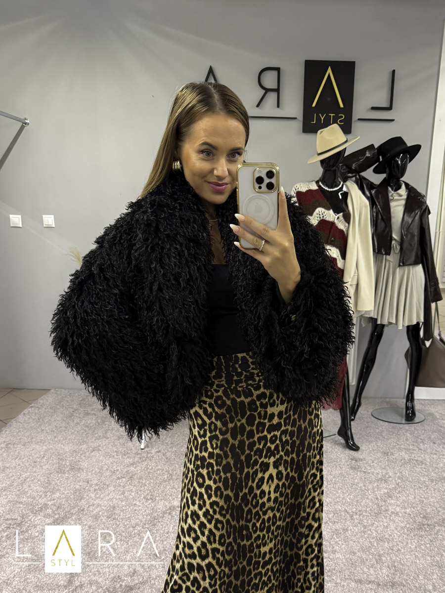 Štýlová dámska kožušinová bundička, krátka, zapínanie na háčiky, s podšívkou, mierne oversize strihu. Bundička má aj vrecká. Modelka má výšku 165 cm.