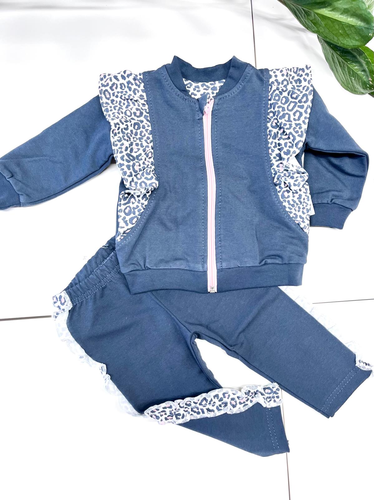 Komplet tvoria mikina na zips a tepláčky na gumičku.