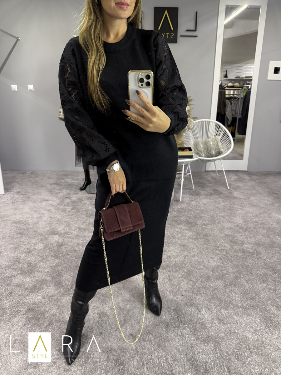 Šaty sú z príjemného úpletového materiálu, rovného strihu, na rukávoch je krajka s potlačou kvetov, na konci rukáva, v spodnej časti šiat a okolo krku je patent. Opasok nie je súčasťou. Šaty sú elastické. Modelka má výšku 165 cm.