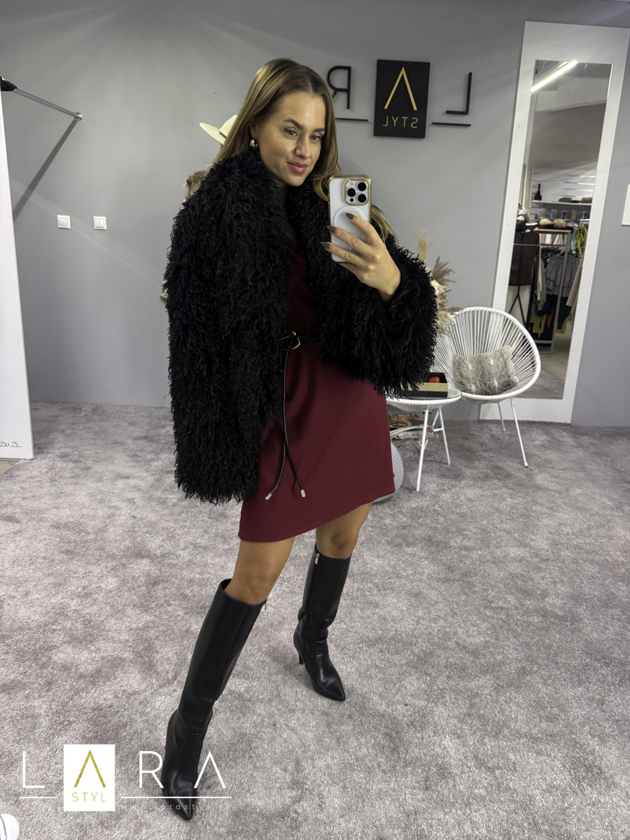 pul242410 Úpletové šaty s opaskom, čierne |