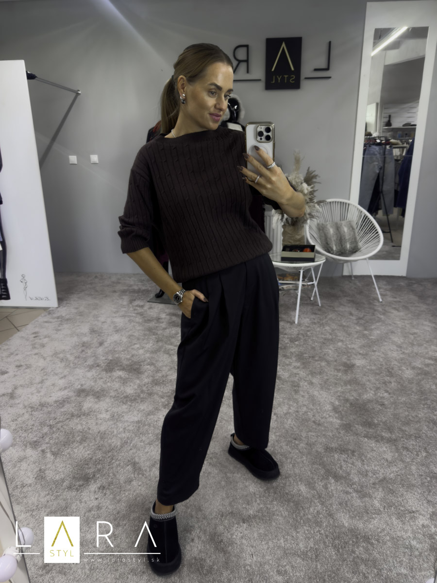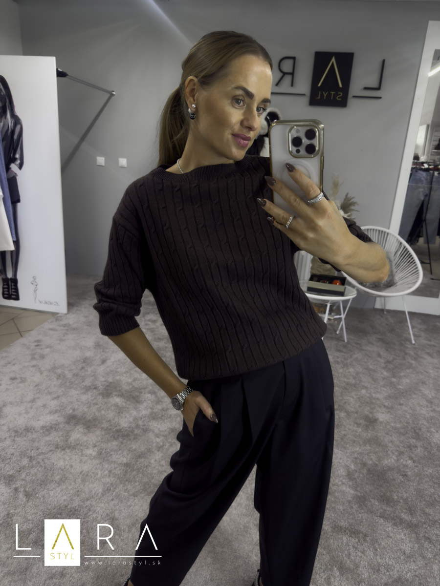 Dámsky pulóver s 3/4 rukávom a nádherným jemným vzorom. Elastický materiál. Modelka má výšku 165 cm.