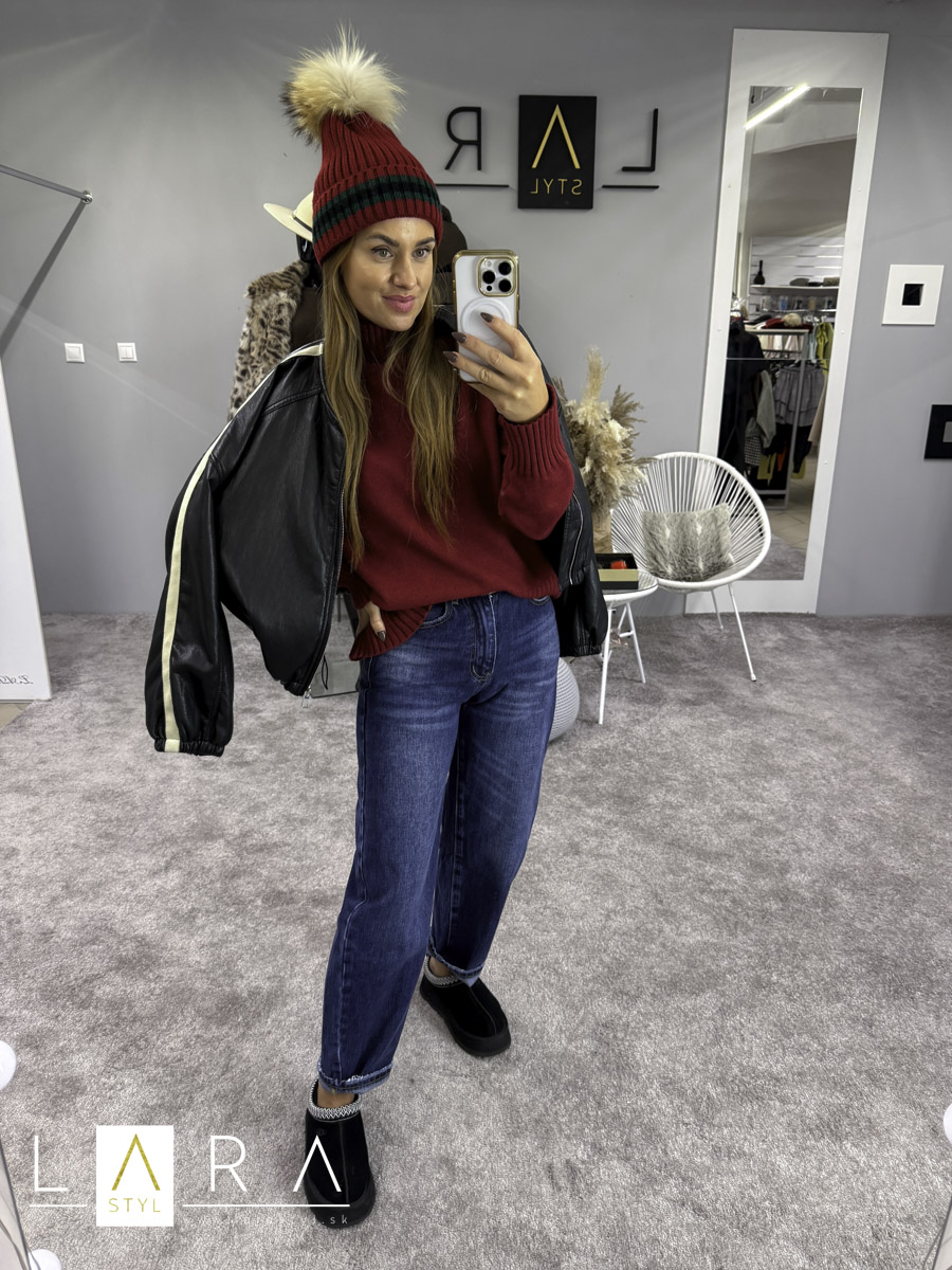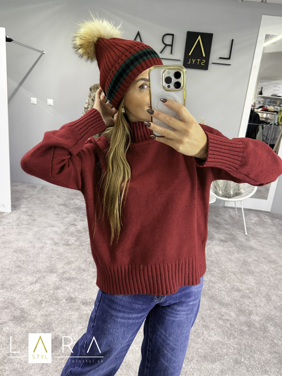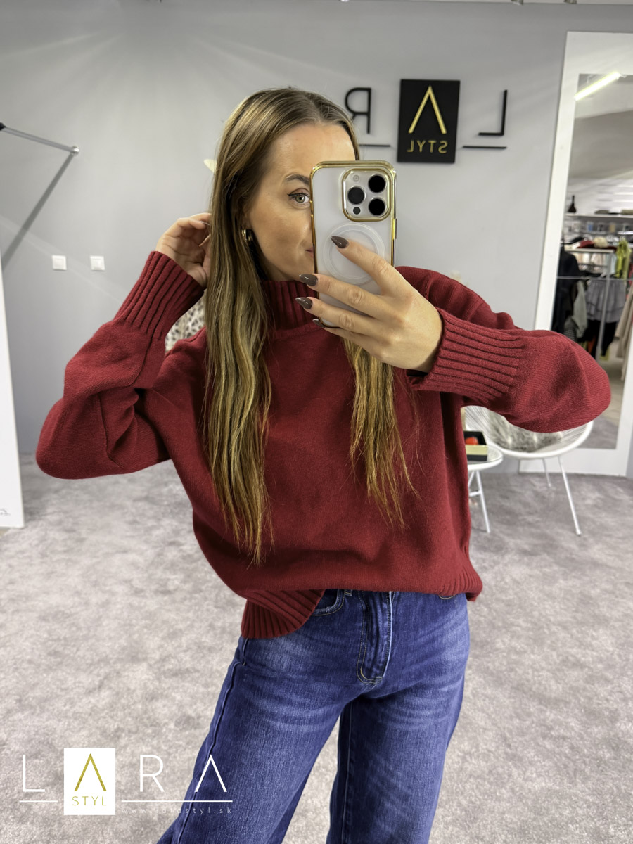 Dámsky rolákový pulóver s dlhým rukávomi, okolo krku, rukáva a v spondej časti hrubší patent. Rolák je mierne oversize strihu. Modelka má výšku 165 cm.