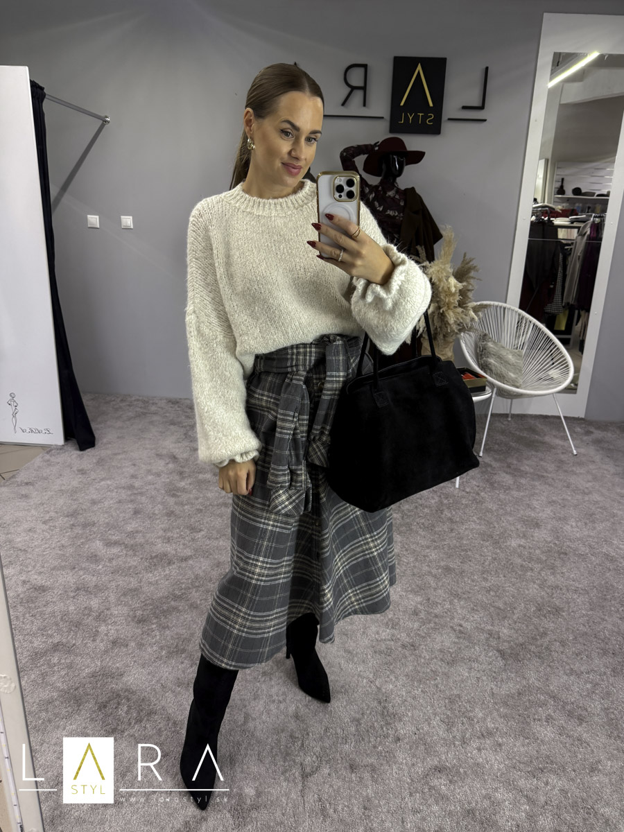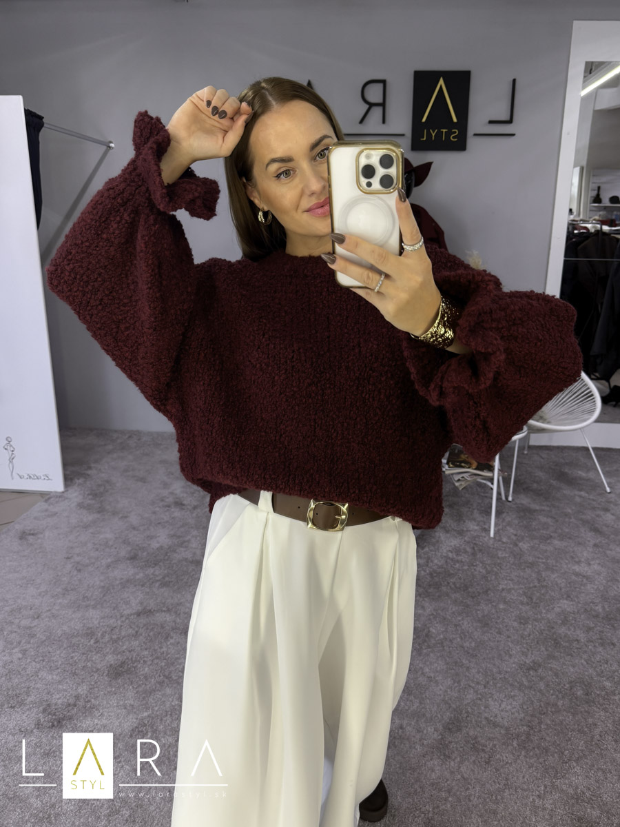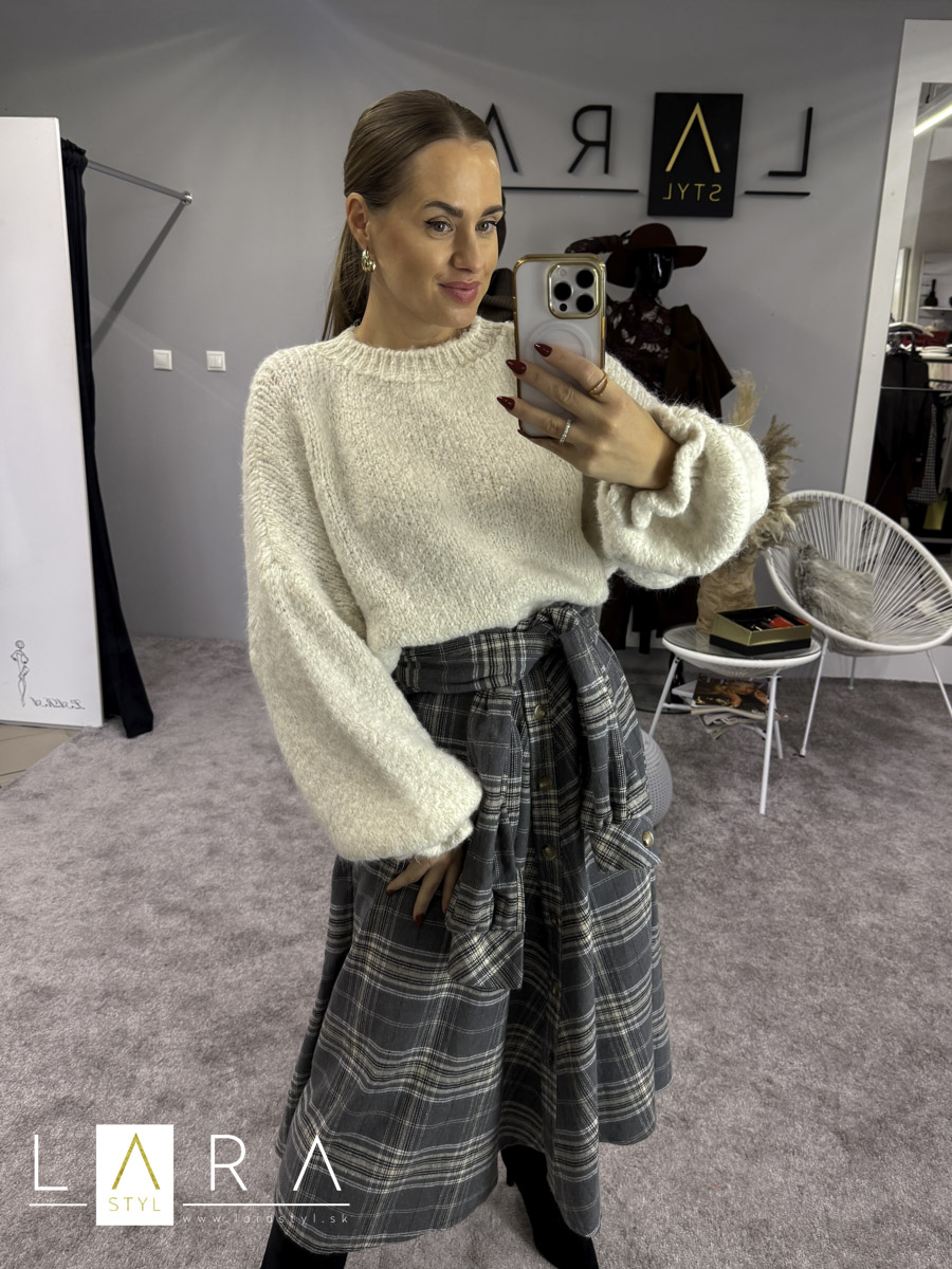 Dámsky úpletový sveter s volánikom na konci rukávov, veľmi príjemný materiál. Okolo krku a v spodnej časti je patent. Modelka má výšku 165 cm.