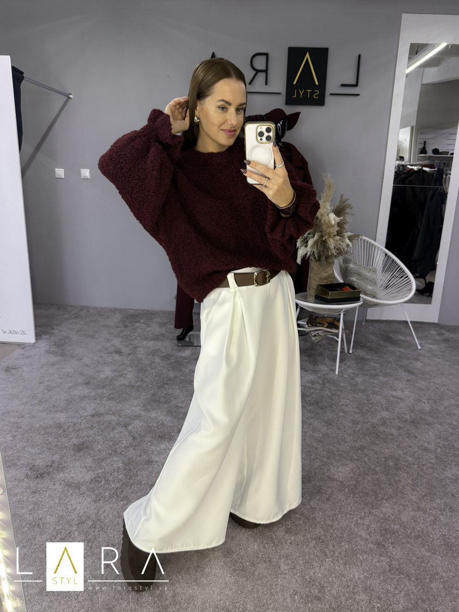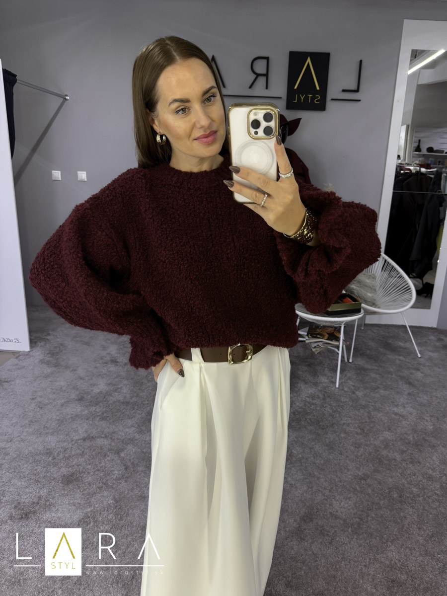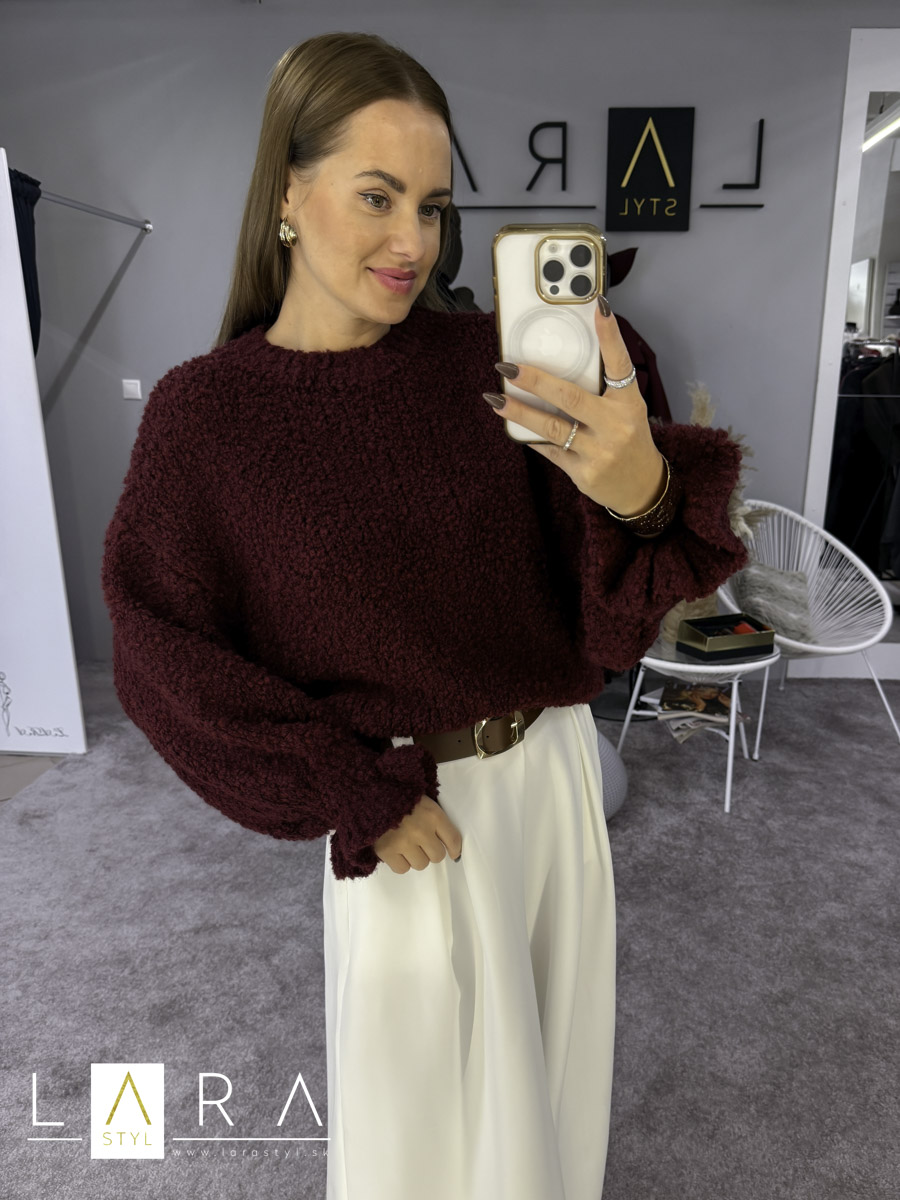Dámsky úpletový sveter s volánikom na konci rukávov, veľmi príjemný materiál. Okolo krku a v spodnej časti je patent. Modelka má výšku 165 cm.