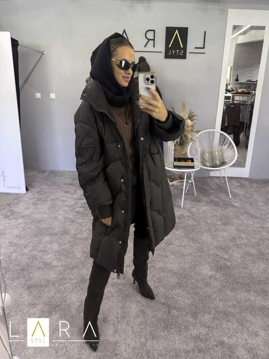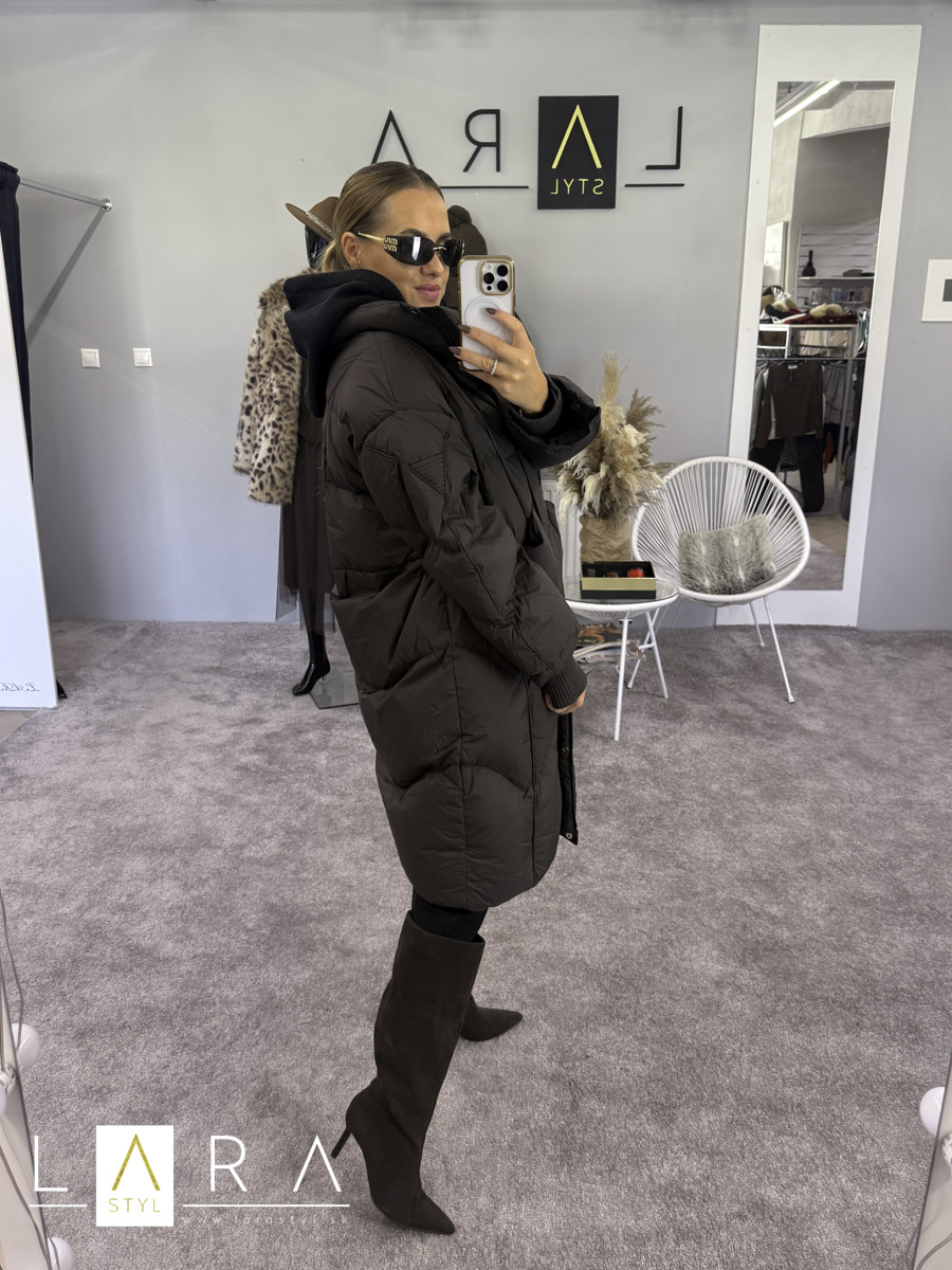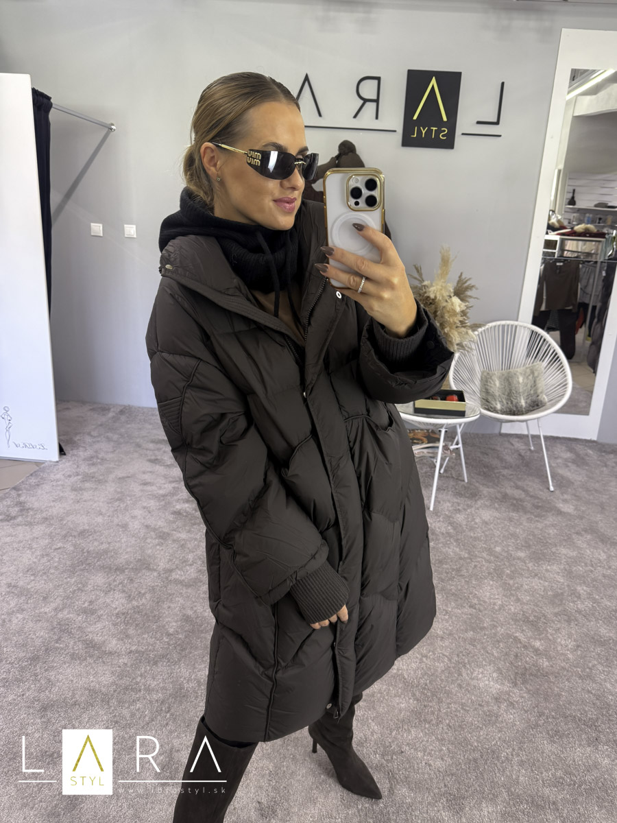 Prešívaná zimná bunda LENA so stojačikom, so zapínaním na zips a na kovové gombíky po celej dĺžke. V prednej časti sa nachádzajú vrecká. Na konci rukáva je vsadený úpletový patent. Bunda je mierne OVERSIZE strihu. Modelka má výšku 164 cm.