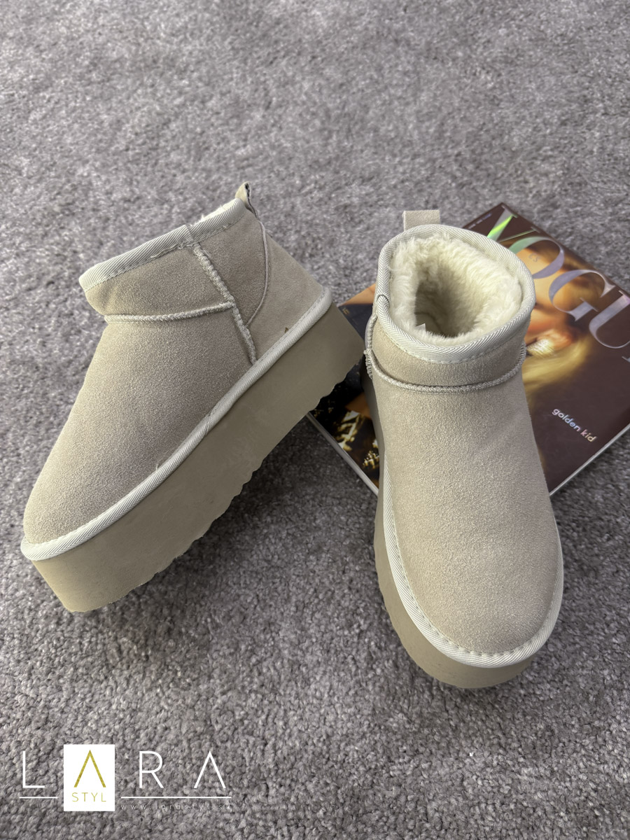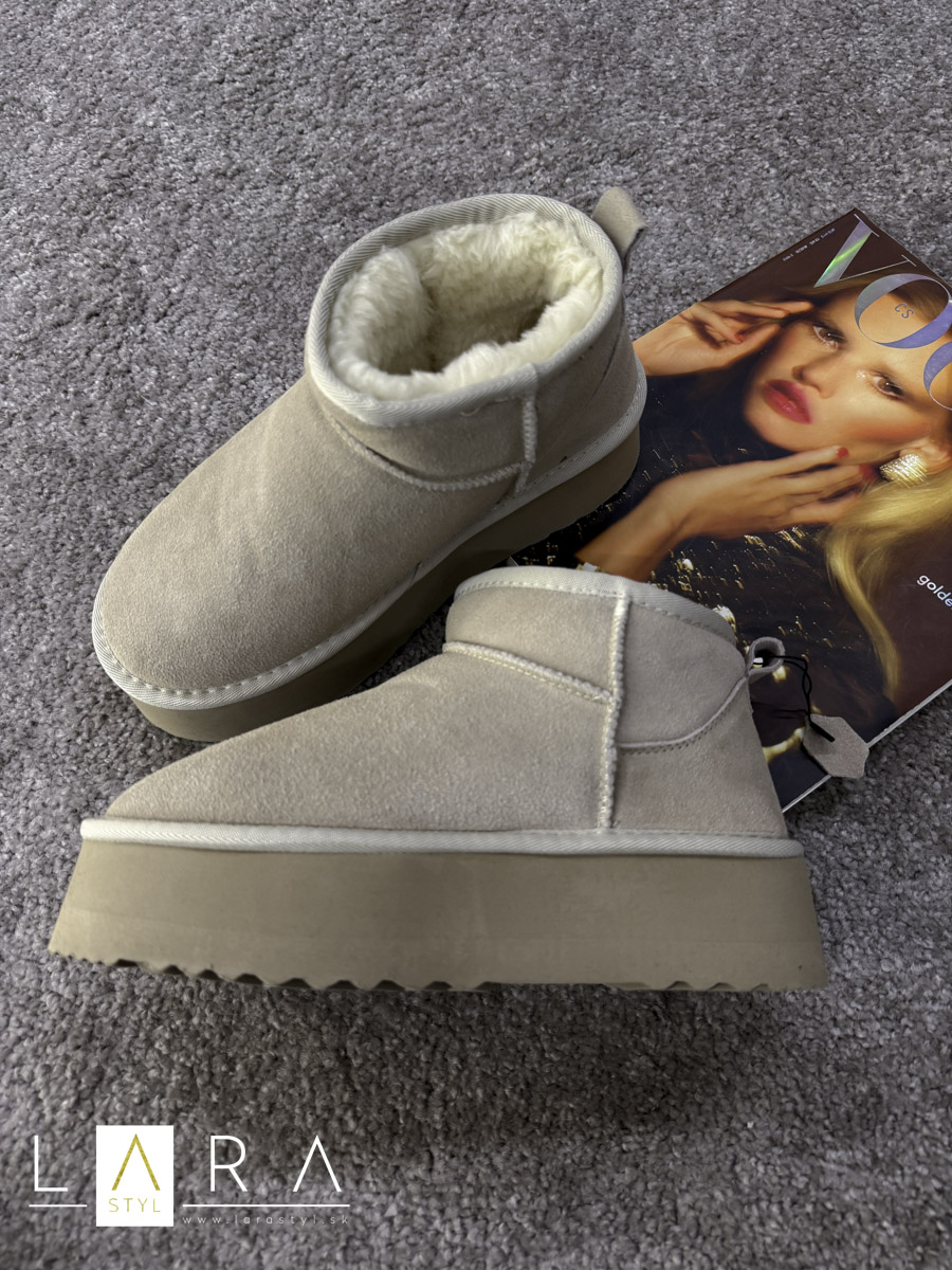 Štýlové kožené dámske topánky na platforme, vo vnútri kožušinka. Výška platformy 4 cm.