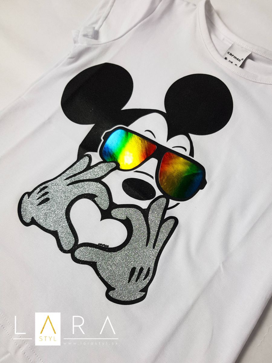 Tričko s potlačou Mickey z kvalitného bavlneného materiálu. V zadnej časti je tričko predĺžené.